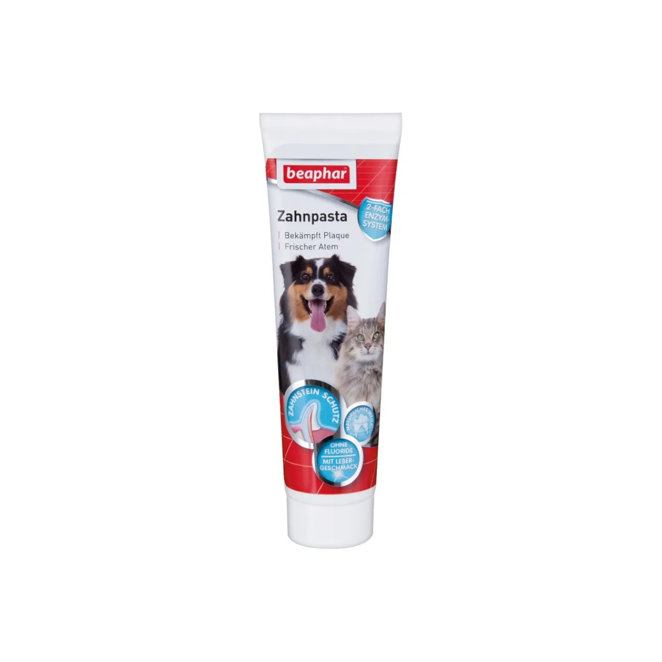Le dentifrice Beaphar au goût de foie pour chiens et chats nettoie les dents, soutient leur blanc naturel et procure une haleine fraîche.