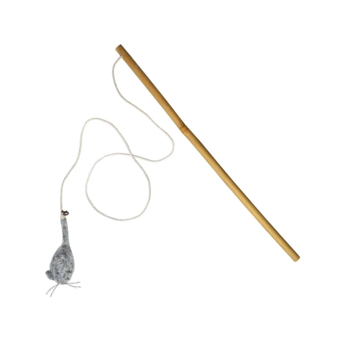 La « proie », c’est-à-dire notre souris en feutre, est composée à 100 % de pure laine de mouton. Grâce à la clochette sur la queue, elle fait même des « bruits de proie » typiques. Comme tous nos jouets, le jouet canne à pêche complet a été fabriqué à la main de manière équitable. Le bâton « Zauber » se compose d’un bambou durable et le cordon qui y est attaché est en pur coton – un plaisir de jeu naturel et équitable pour vous deux.