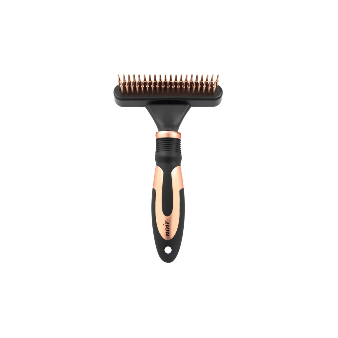 Convient aux chiens et aux chats aux poils longs et aux sous-poil dense. La brosse pour sous-poils enlève facilement et en douceur et sans tirer les poils et la saleté du sous-poils en tournant et en adaptant les broches à la pression. La double rangée de dents avec 39 broches est particulièrement adaptée au sous-poil épais. La poignée élégante couleur noir-cuivre est ergonomique et confortable en main et est fabriquée en plastique ABS solide.