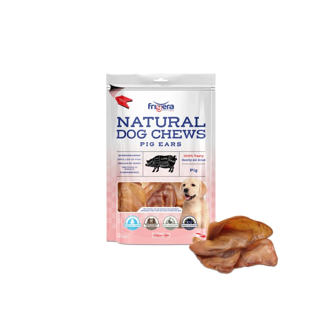 Découvrez le classique absolu des friandises pour chien naturellement séchées : les oreilles de porc friGERA ! Nos oreilles de porc sont fabriquées à partir des meilleurs ingrédients de base frais, séchés ensuite avec soin. De plus, ils sont une excellente source de protéines, indispensables pour une musculature saine. Peu importe la taille ou l’âge de votre chien, il ne résistera pas à l’odeur propre typique de nos oreilles de porc délicieuses !