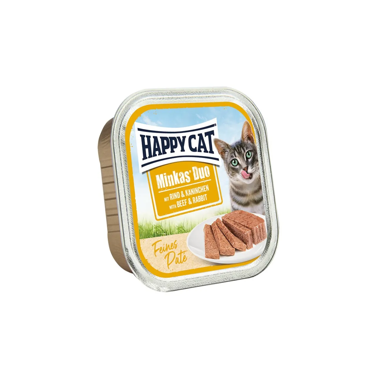 HAPPY CAT Minkas Duo Nourriture humide pour chat adulte, Bœuf & Lapin, Pâté 16×100 g^ Nourriture Humide