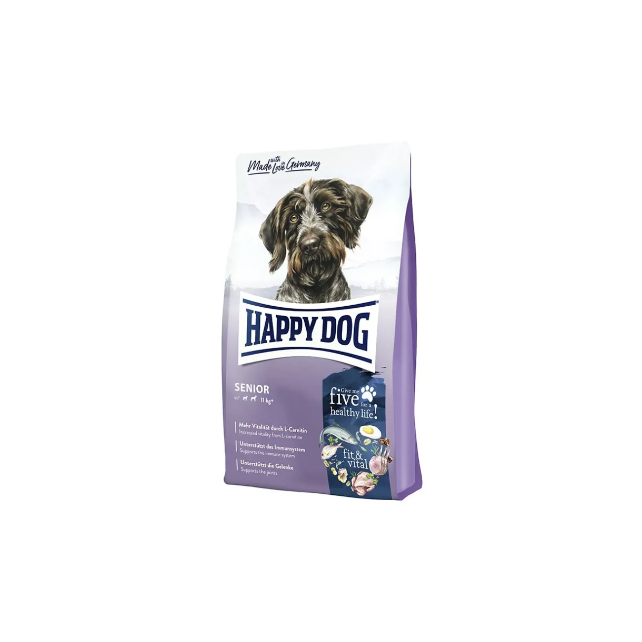 Happy Dog fit & vital Senior est parfaitement adapté aux besoins des chiens âgés, car le métabolisme évolue avec l’âge du métabolisme des voies urinaires.