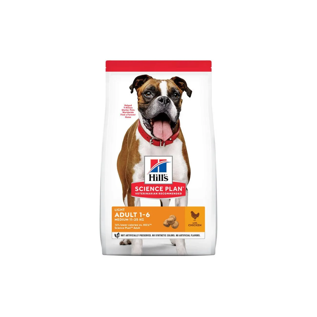 Juste parce que votre chien adulte a un grand appétit, cela ne veut pas dire que sa nourriture doit contenir de nombreuses calories. Hill’s Science Plan Light Adult au poulet fournit une alimentation exactement adaptée aux chiens adultes peu actifs qui ont besoin de maintenir un poids sain et un style de vie sain et nécessitent pour ce faire une alimentation faible en calories. Cette nourriture pour chien premium contient de la L-carnitine pour promouvoir une fonction cardiaque saine de votre chien. Les acides gras oméga-6 et la vitamine E alimentent la peau et le pelage de votre chien, tandis que des protéines haute qualité et des fibres naturelles garantissent que votre chien adulte se sente rassasié et satisfait entre les repas.