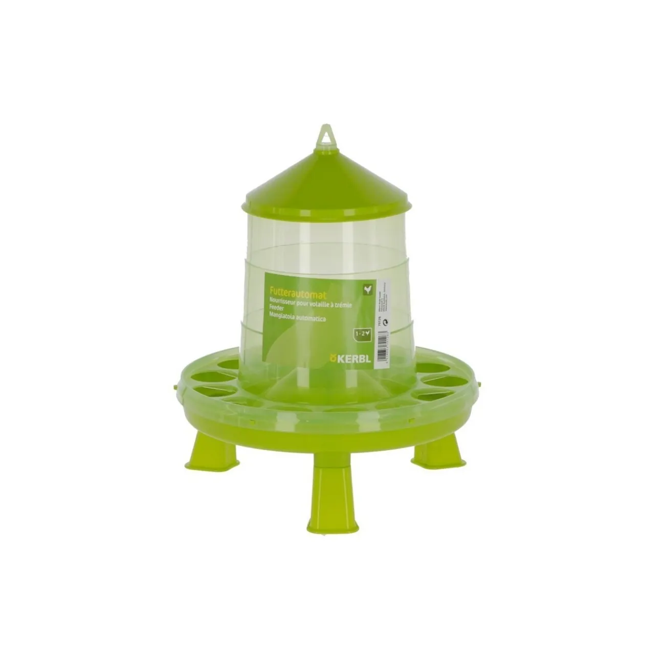 Les supports fournis protègent la nourriture de la saleté. Le distributeur de nourriture peut également être suspendu. Le plastique alimentaire est idéal pour nourrir les poules.