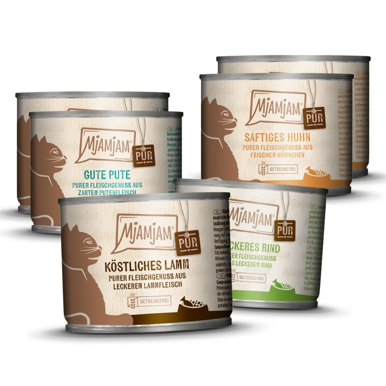 MjAMjAM – Le pack mixte de pur plaisir de viande offre une nourriture humide pour chats en quatre variétés différentes avec 100% de viande. Les recettes ont été développées selon le principe « Respectueux de la nature et proche de la proie » et sont sans gluten et sans lactose. Ainsi, la nourriture humide convient parfaitement aux chats sensibles. De plus, elle fournit à votre compagnon des vitamines et minéraux essentiels et est riche en acides gras polyinsaturés.