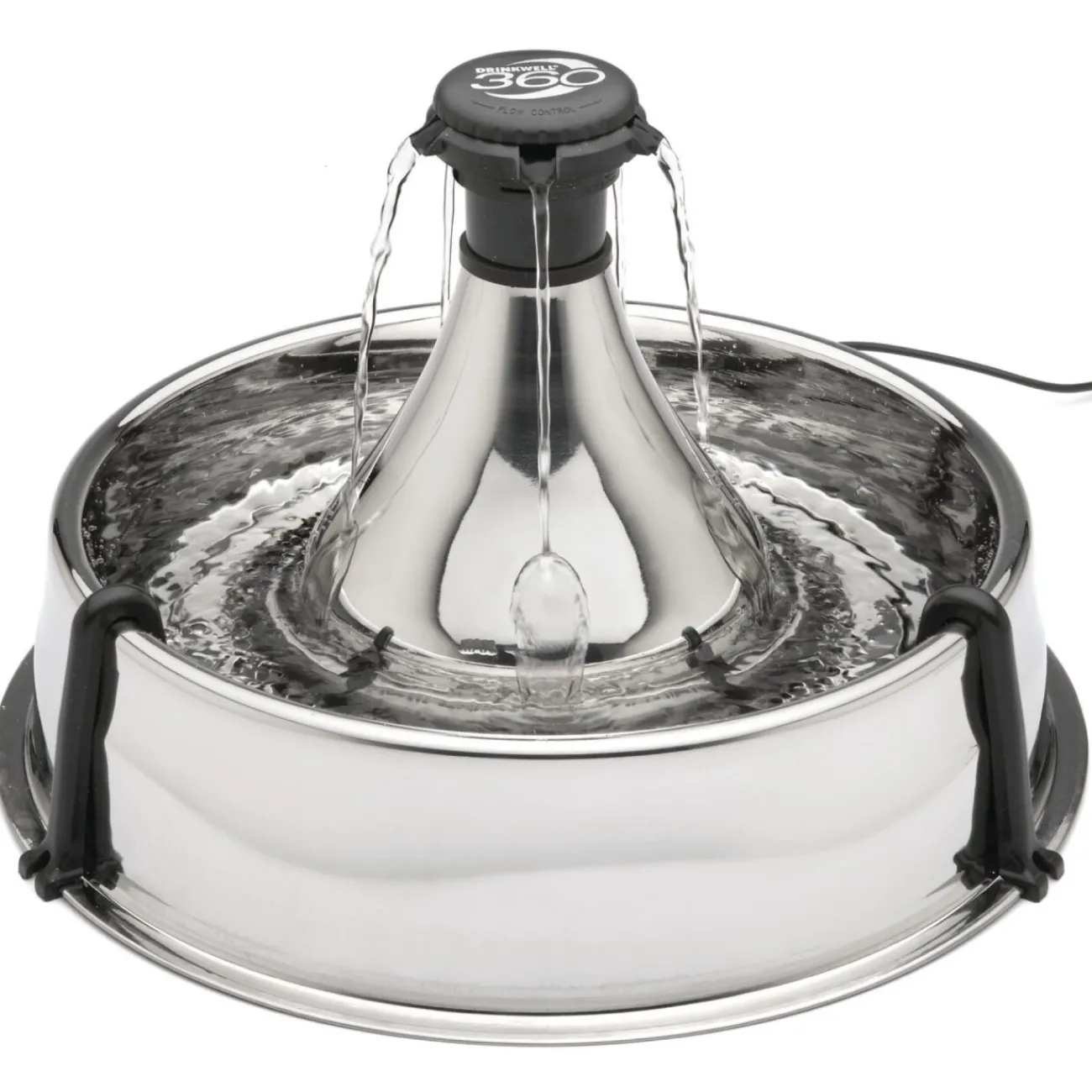 Vue d’ensemble de la fontaine à eau PetSafe Drinkwell 360 en acier inoxydable :