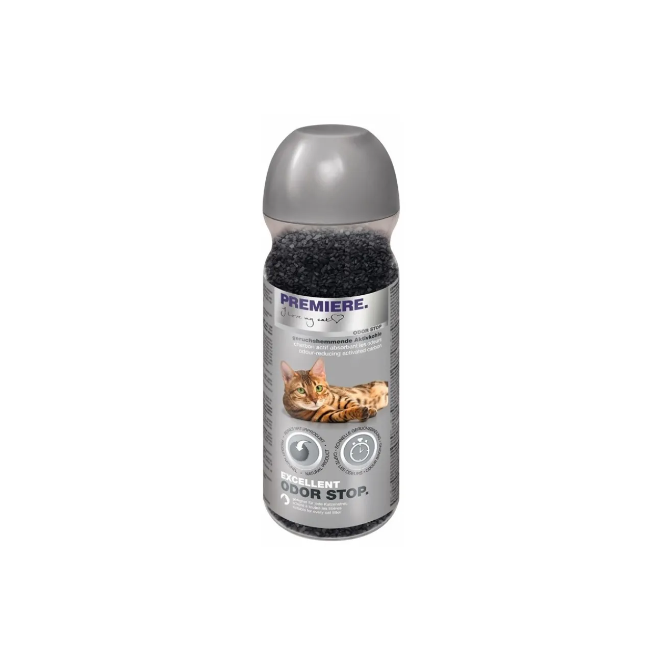 1. Répartissez Odor Stop sur la litière pour empêcher la formation d’odeurs désagréables dans les toilettes pour chat.