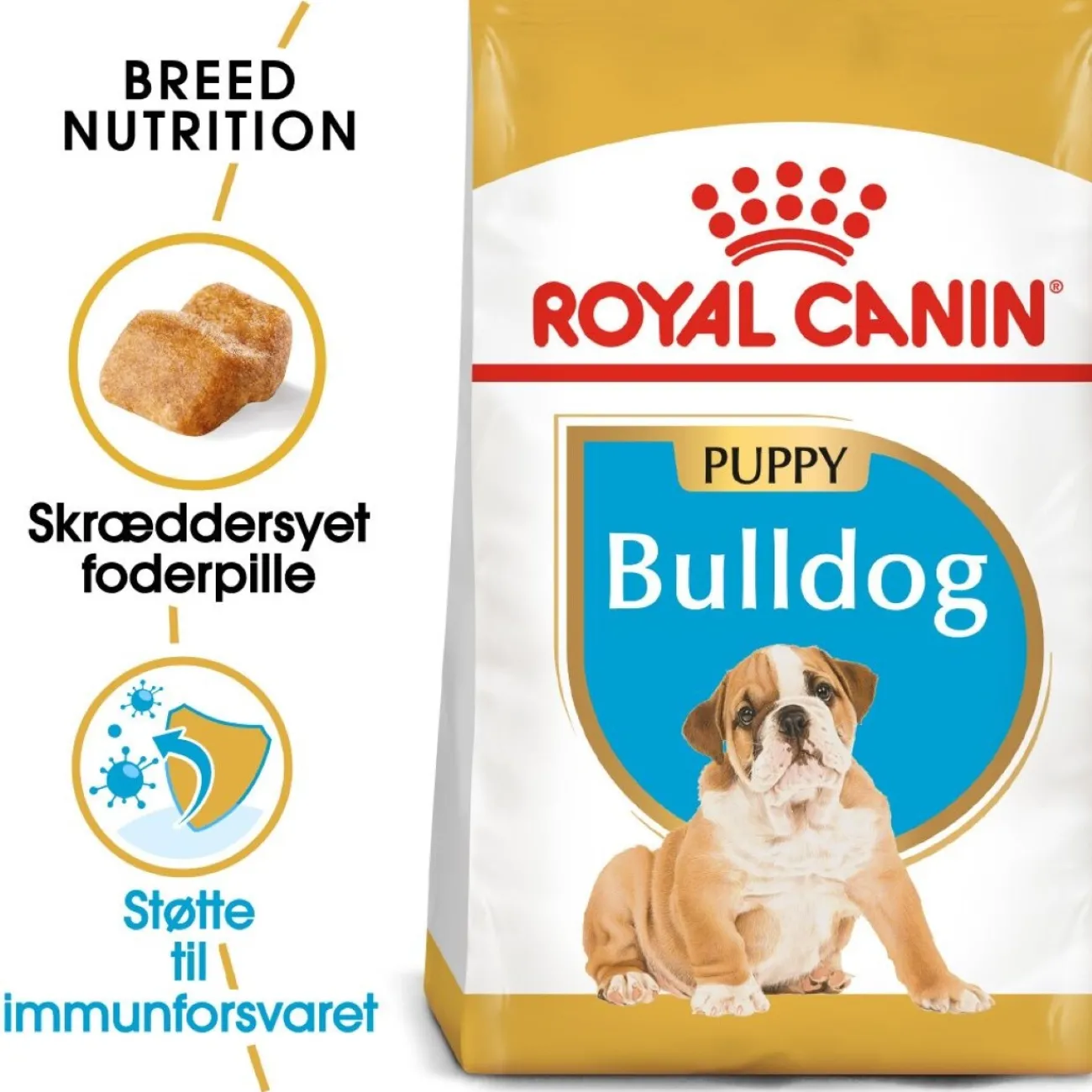 ROYAL CANIN Bulldog Puppy a été développé spécialement pour les chiots bouledogues jusqu’à 12 mois. Grâce à un complexe antioxydant exclusif (y compris vitamine E), cet aliment pour chiots aide à soutenir les défenses immunitaires tout au long de leur développement. De plus, ROYAL CANIN Bulldog Puppy contient une combinaison spéciale de nutriments avec une protéine de haute qualité (L.I.P.) qui a été spécialement choisie pour sa grande digestibilité. Par ailleurs, les nutriments contenus dans la recette aident à maintenir un équilibre sain de la flore intestinale, ce qui contribue à une bonne qualité des selles.
