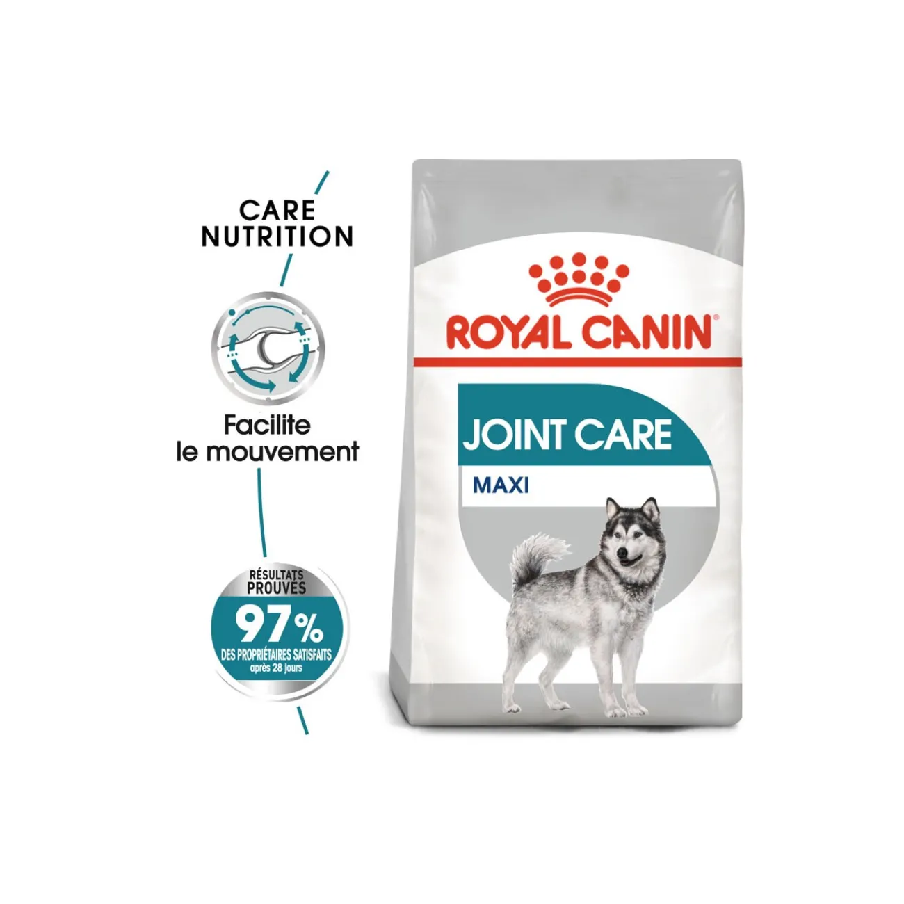 Royal Canin® Joint Care Maxi convient aux chiens pesant entre 26 et 44 kg qui ont tendance à avoir des problèmes articulaires. La nourriture se compose d’éléments à teneur réduite en calories, de sorte que les articulations de votre chien ne subissent pas de tensions supplémentaires