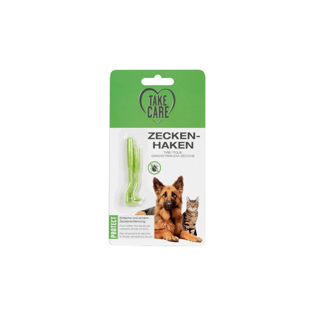 Il n’est pas aussi facile de protéger votre chien ou votre chat des tiques, car les quadrupèdes aiment s’ébattre dans des environnements dangereux. Si votre animal domestique arrive à la maison avec une tique dans le poil, il est surtout important d’avoir les instruments adaptés sous la main pour retirer les parasites. Les morsures de tiques ne sont généralement pas très dangereuses pour le chien ou le chat. La plupart des infections sont souvent transmises lorsque la tique distribue du sang. C’est pourquoi, il faut retirer les tiques entièrement implantées sans pression. Contrairement aux pinces à tiques le tire-tique TAKE CARE est un instrument spécialement adapté. Et l’emballage contient deux tire-tiques de différentes tailles, selon la tique que vous voulez retirer. Grâce à la facilité de maniement, aucune pression n’est exercée sur le corps de la tique lorsque celle-ci est retirée, ce qui empêche l’injection de bactéries dans la peau.