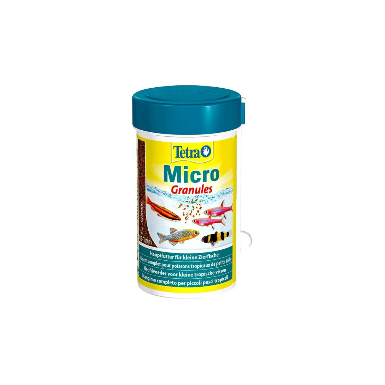Avec un diamètre de 0,3 à 1 mm, les granulés de diamètre particulièrement petit contiennent des nutriments de haute qualité selon une formule équilibrée à base d’ingrédients végétaux et animaux. De plus, les granulés rouges contiennent des caroténoïdes pour une couleur intense et les granulés verts contribuent à la santé et à la vitalité grâce aux composants végétaux. Les petits granulés Tetra Micro sont également très bien adaptés aux poissons à petite bouche, car ils trempent rapidement dans l’eau et sont faciles à manger. La haute digestibilité de cet aliment de base garantit également une eau claire. Dans l’ensemble, les Tetra Micro Granulés sont un aliment de base idéal pour tous les petits poissons d’ornement ainsi que pour les jeunes cichlidés en croissance et les poissons d’eau de mer.