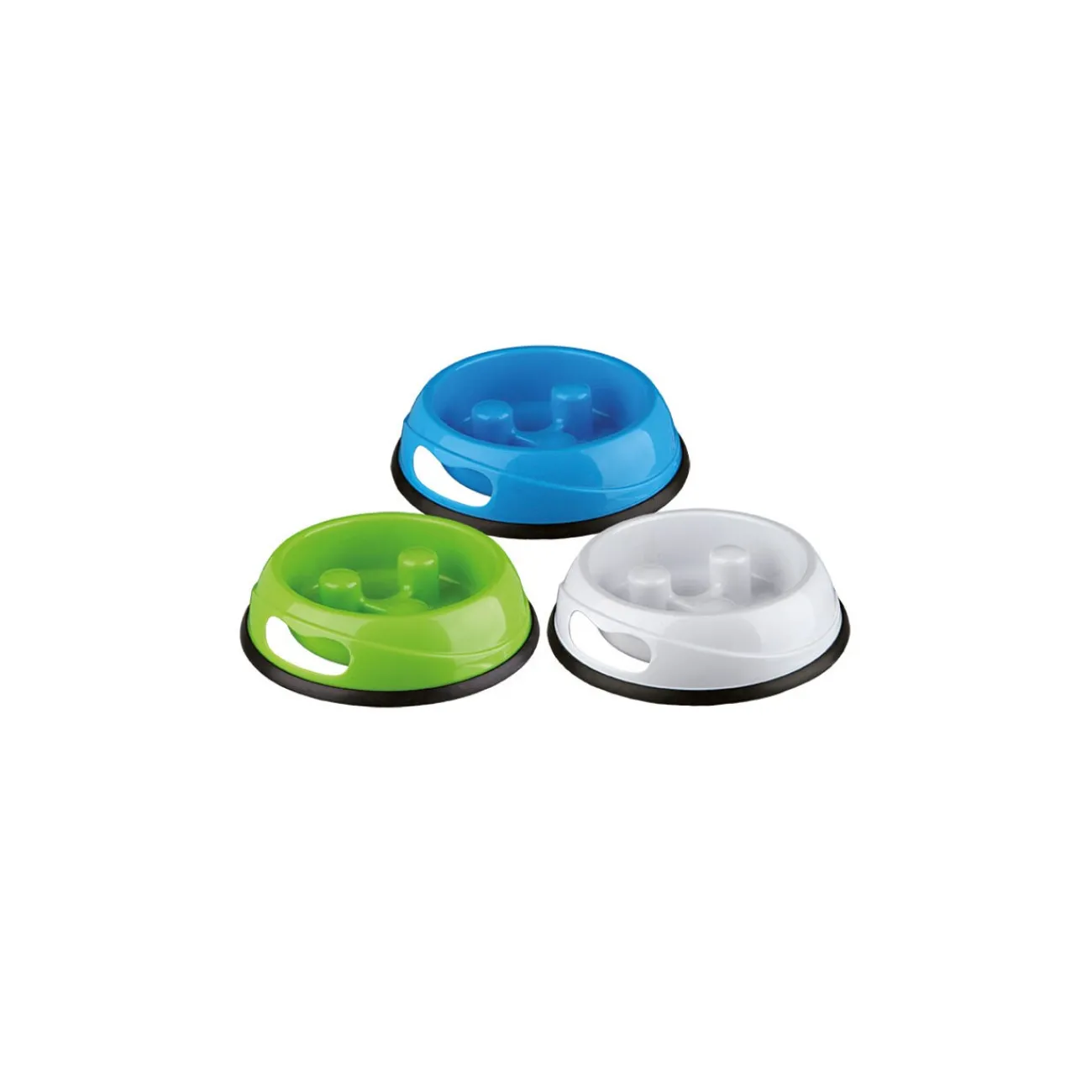 Toujours lentement est la devise de la gamelle Trixie Slow Feed, cette gamelle concave empêche la nourriture d’être avalée trop vite et offre une position stable grâce à l’anneau en caoutchouc.