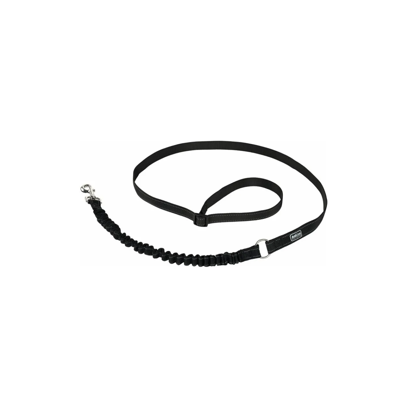 La laisse pour vélo AniOne se fixe sur la harnais. Grâce au ressort intégré et à la corde élastique, la traction brusque est atténuée, ce qui ménage les articulations de votre compagnon à quatre pattes.