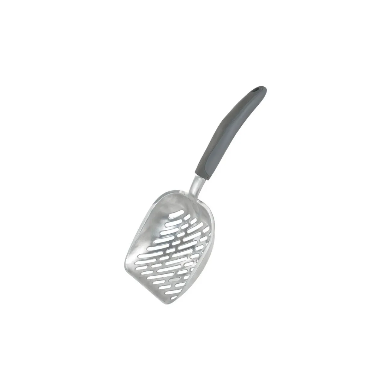 La pelle à litière en aluminium inoxydable est particulièrement résistante et hygiénique.