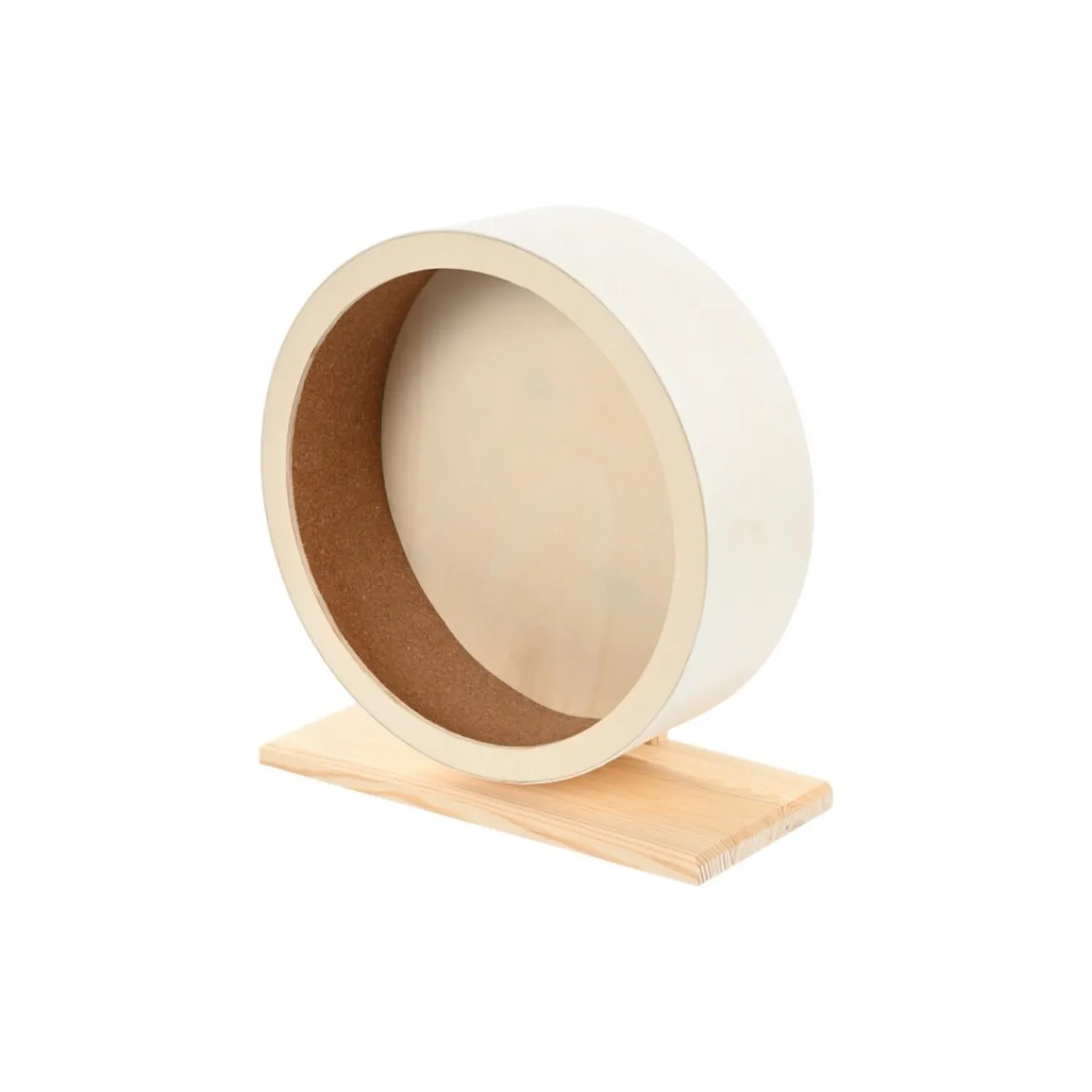 Le liège crée une surface de marche agréable pour les pattes. Le roulement à billes fonctionne facilement et silencieusement. La surface de course fermée offre plus de stabilité et la paroi arrière fermée offre plus de sécurité à l‘entrée & à la sortie ainsi que pendant l’utilisation. Le grand socle en bois offre une stabilité supplémentaire.