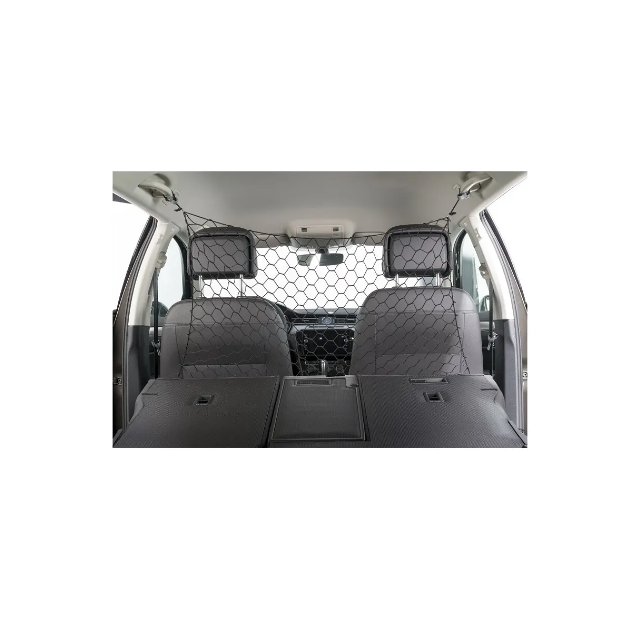 Le filet de séparation pour la voiture peut simplement se visser à l’habillage de plafond ou se fixer aux poignées.