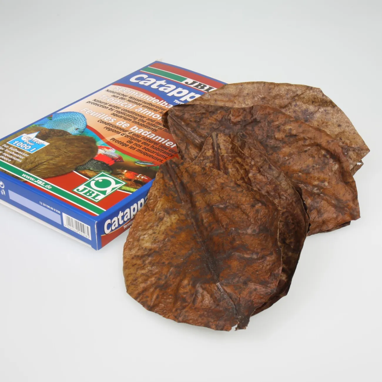 Feuilles de Terminalia catappa pour aquariums d’eau douce. Pour l’entretien naturel des poissons et des invertébrés dans les aquariums d’eau douce. Effet naturel des feuilles de Terminalia catappa : Favorise le bien-être, la vitalité et la disposition à frayer. Conditionneur d’eau naturel et protection des muqueuses provenant de la région d’origine de nos habitants d’aquarium. Favorise le bien-être, la vitalité et la disposition à frayer. Les tanins renforcent les muqueuses et préviennent les maladies. Récoltées directement de l’arbre, nettoyées, lissées et séchées au soleil. Contenu de la livraison : 1 paquet de Catappa XL, 10 feuilles, environ 23 cm de long. Application : 1 feuille/50 – 100 l d’eau. Les substances actives sont complètement libérées en 1 à 3 semaines.