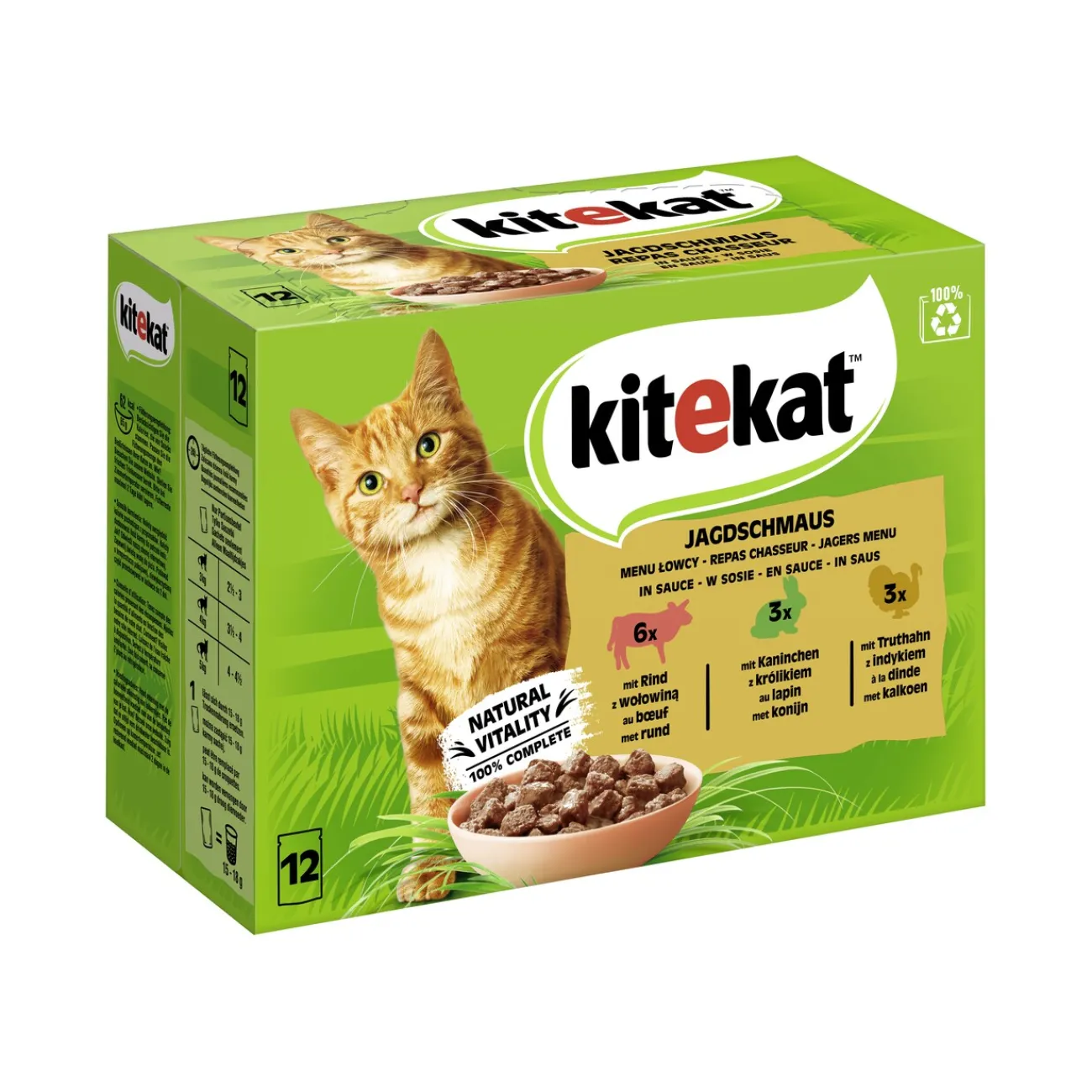Avec KITEKAT™, votre chat mord la vie à pleines dents.Avec des morceaux et des ingrédients de qualité supérieure, il fournit tous les nutriments et vitamines essentiels pour que votre chat puisse profiter pleinement de la vie.KITEKAT™ régal chasseur contient de délicieuses formules au bœuf, au lapin et à la dinde.