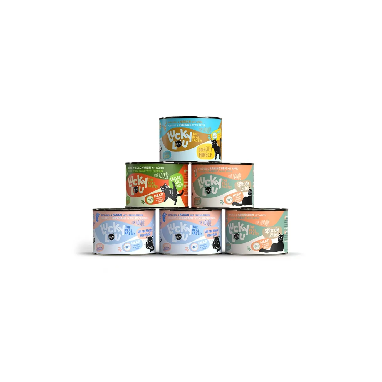 Votre chat est-il un fan de vrai goût ? La nourriture Lucky Lou est spécialement adaptée aux différentes phases de vie et aux besoins individuels – pour les chatons, les gerbilles adultes et les seniors – avec en plus la gamme Functional Food pour chats stérilisés et tout pour les besoins énergétiques réduits. Si votre quadrupède aime les petites bêtes, il va adorer les variétés aux insectes. Lucky Lou est disponible en 18 variétés différentes, en sachets de 125 g ainsi qu’en boîtes de 200 g et 400 g. Des multipacks sont bien sûr aussi disponibles !
