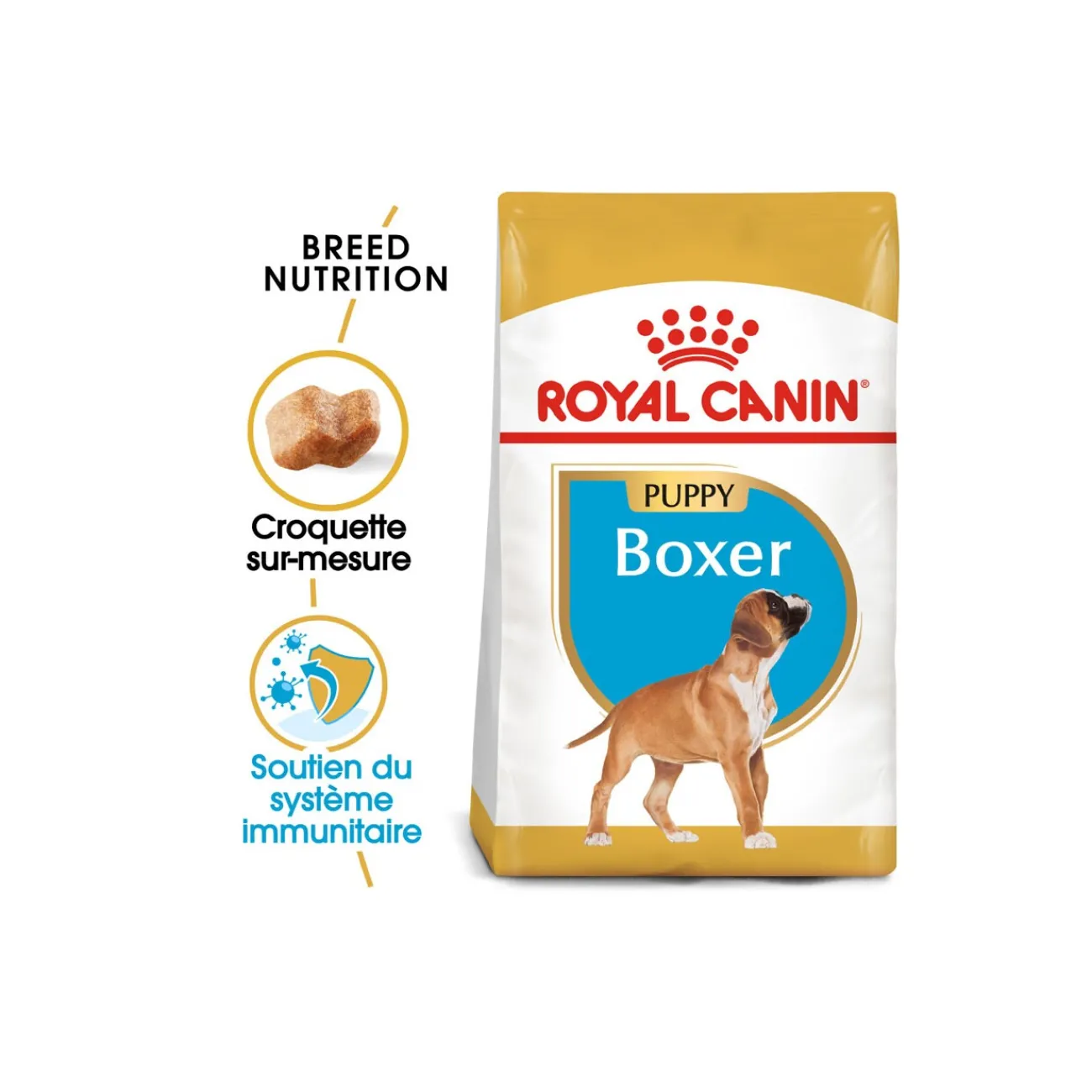 La croissance est une phase importante dans la vie d’un chiot. C’est pourquoi il est important de proposer dès le début à votre chiot des nutriments qui contribuent à une santé optimale. ROYAL CANIN Boxer Puppy convient aux chiots boxers jusqu’à 15 mois et a été spécialement adapté aux besoins de cette race.