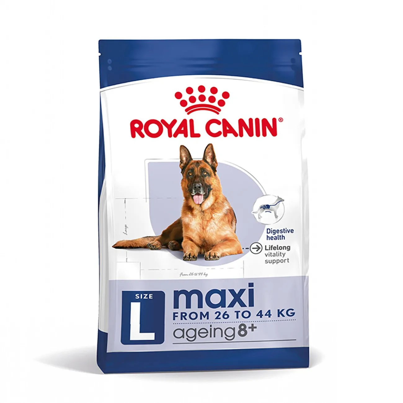 ROYAL CANIN ® Maxi Ageing 8+ offre aux chiens à partir de 8 ans une formule riche en nutriments et équilibrée qui couvre les besoins spécifiques de votre chien de grande taille et l’aide quand il prend de l’âge.