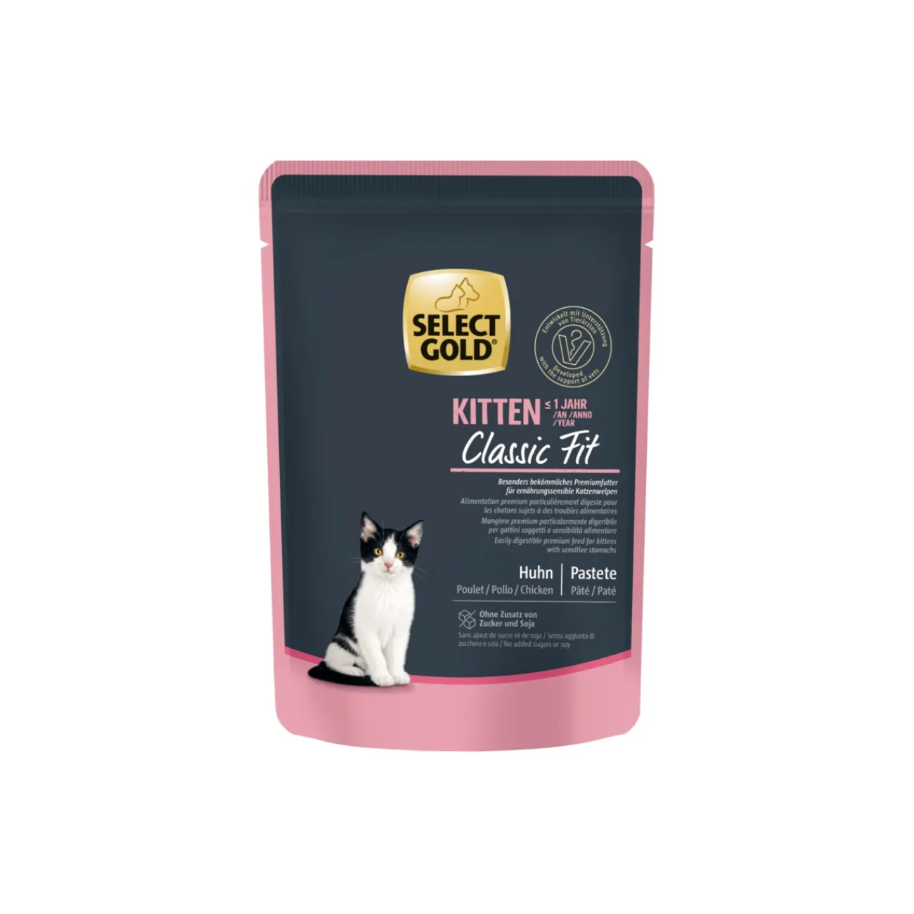 SELECT GOLD Kitten Poulet convient aux chatons et jeunes chats dans la 2ème phase de croissance, de 4 à environ 12 mois, et fournit grâce à sa composition spéciale tout ce qui est nécessaire pour un développement optimal.