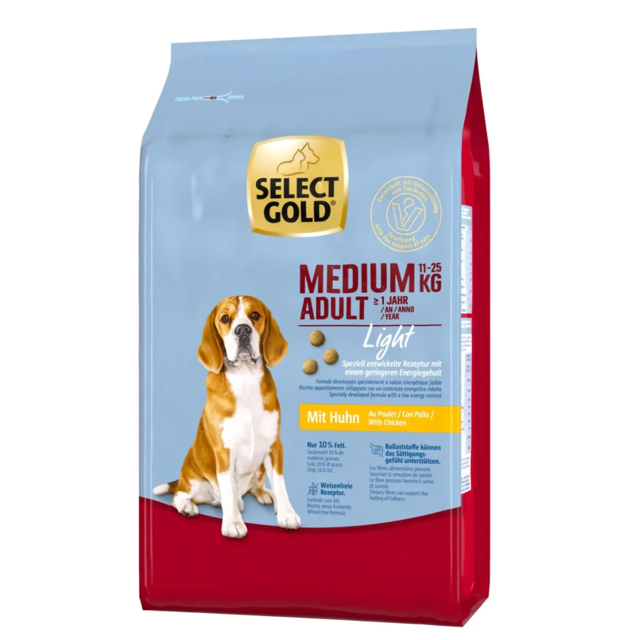 Les croquettes SELECT GOLD Light Medium Adult au poulet sont un aliment de première qualité et équilibré spécialement mis au point pour les chiens adultes de taille moyenne (poids de 11 à 25 kg) et à partir de 12 mois environ ayant tendance au surpoids.