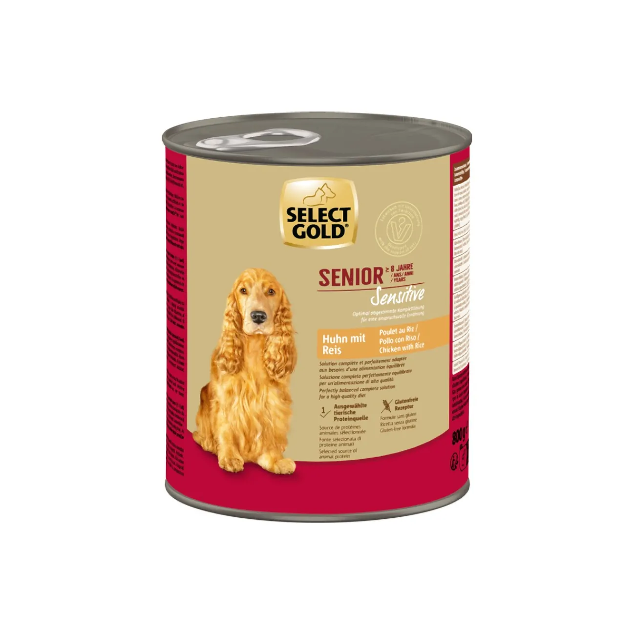 SELECT GOLD Sensitive Senior est la nourriture humide premium spécialement conçue pour les chiens âgés qui ont tendance à avoir des intolérances alimentaires. Vous nourrissez Senior à partir de 6 à 8 ans environ (selon la taille du chien).