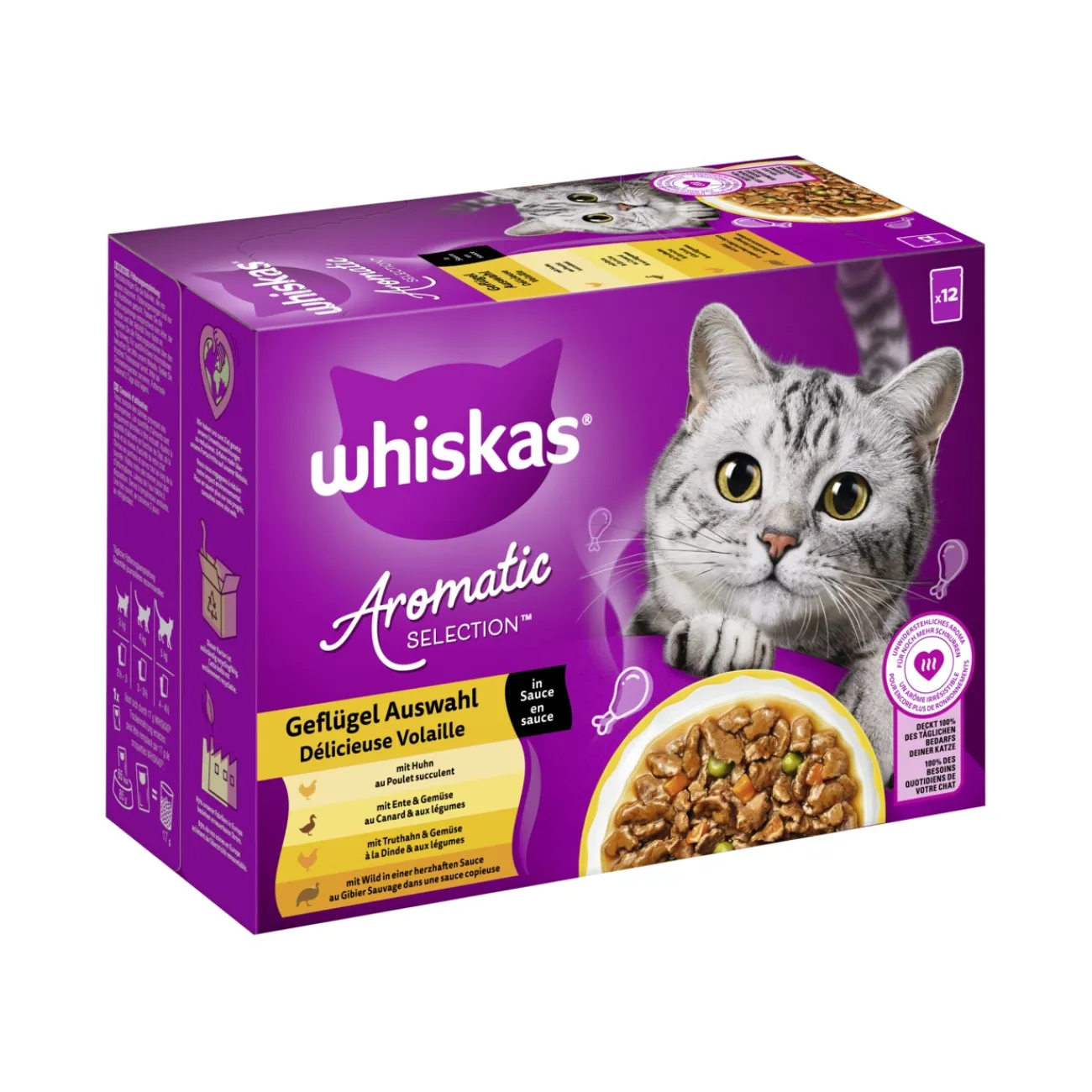La sélection aromatique WHISKAS® AROMATIC SELECTION™ Volaille ouvre un monde de repas aromatiques et irrésistibles. Des ingrédients spécialement sélectionnés sont infusés avec des arômes qui ravissent les sens des chats. Servi avec une généreuse portion de sauce savoureuse, chaque plat a un goût aussi bon qu’il en a l’air.